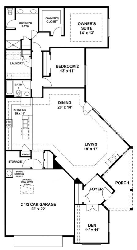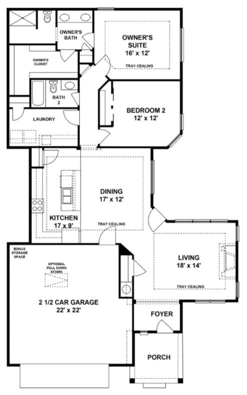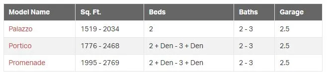 The Courtyard Series by Epcon Communities includes three models that range in size from 1,519 to 2,769 square feet. Homebuyers can select a home that has two or three bedrooms, two or three bathrooms, and an attached two-and-a-half-car garage. All homes include first-floor master suites and the option to add a second floor.